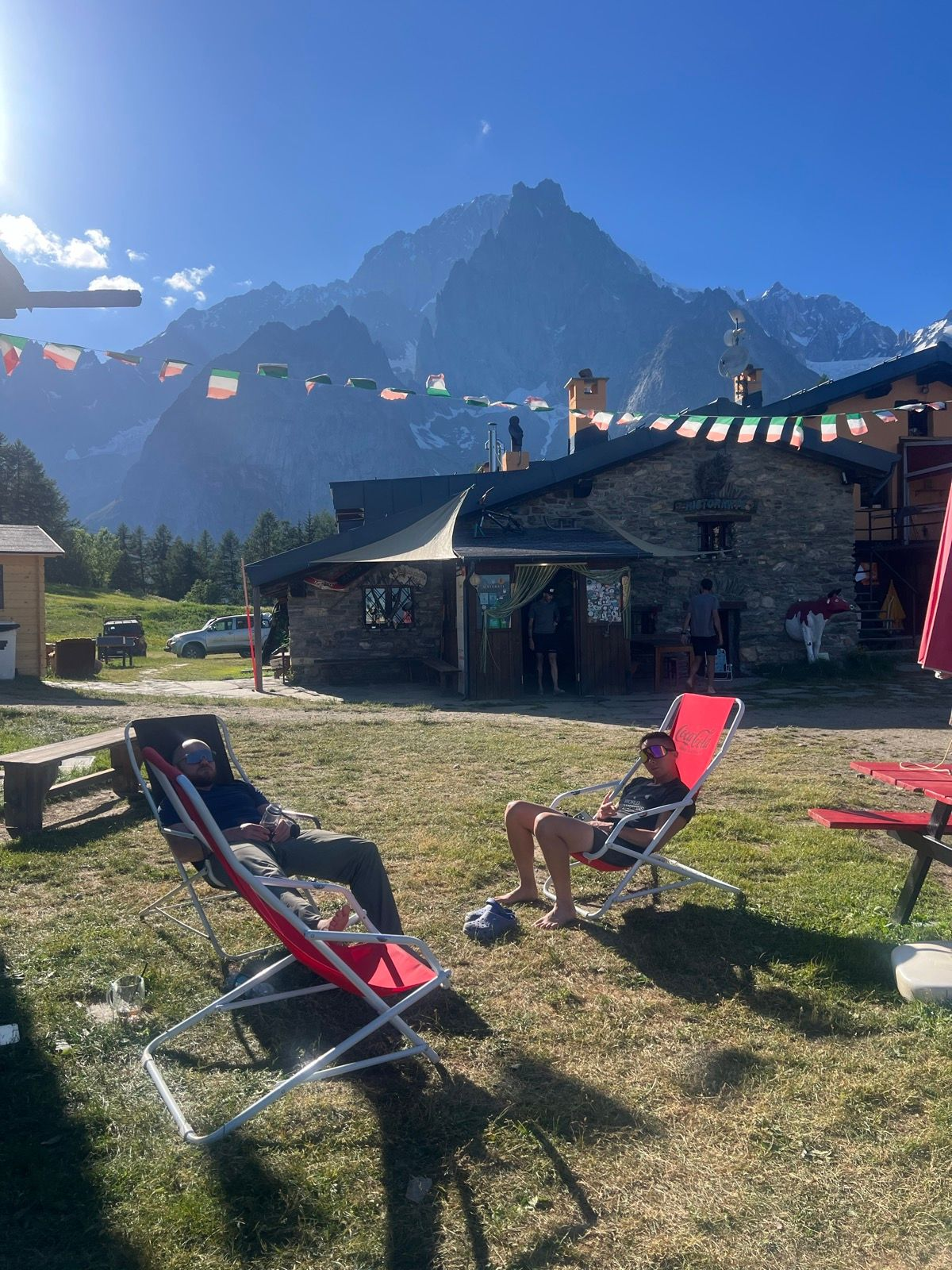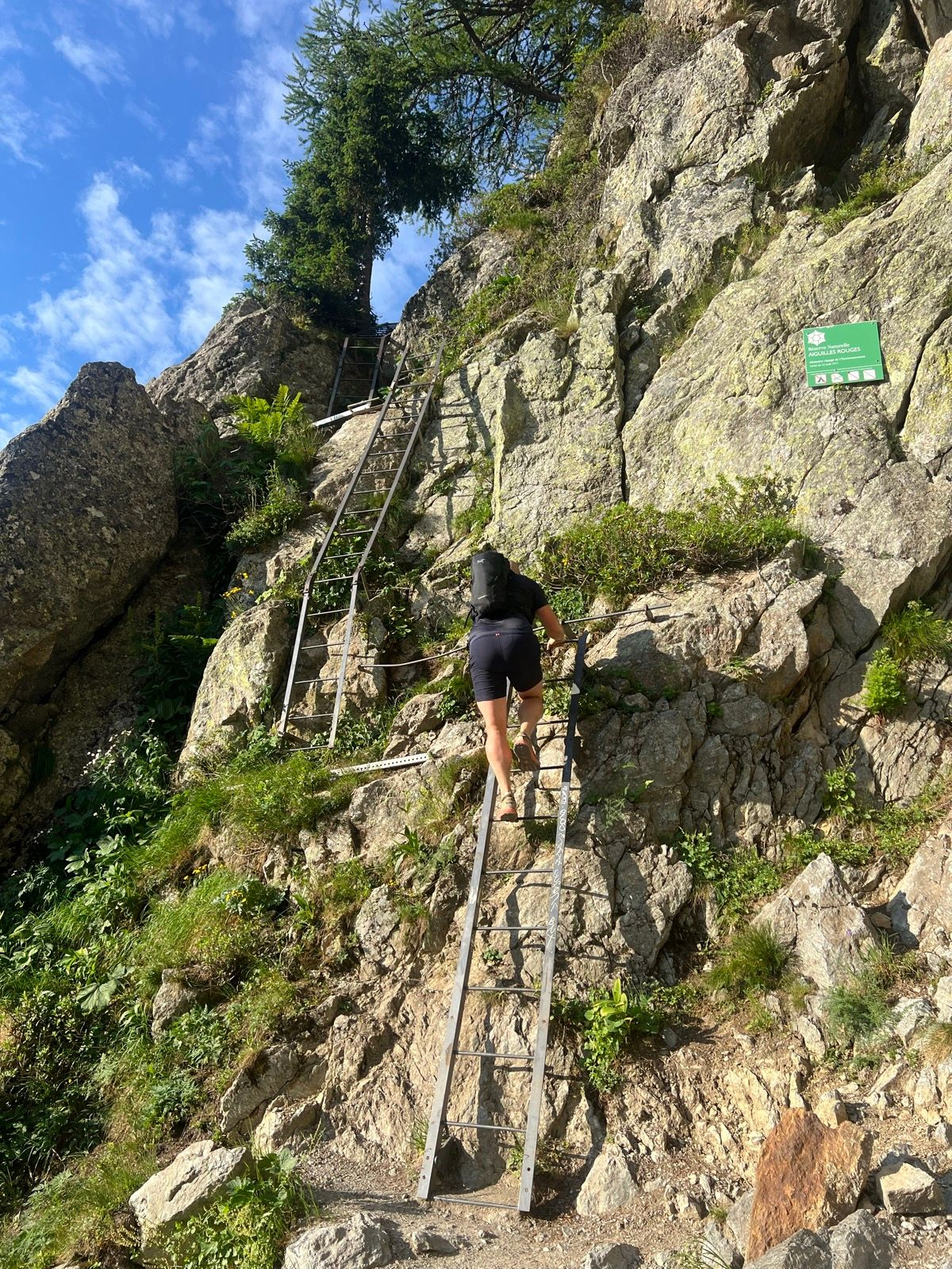 Tre Le Champs (Auberge La Boerne) to Chamonix. Last day, best day. We were all hungry for one more glacier, one more mountain, and one more pass. So we did the high route. A lot of ladders and handholds and then a section where we all bonked and dissociated at the end resulted in a beautiful gondola ride down vs. descending another 4-5k on our ratchet knees. A gondola and Orangina + ice cream finish.