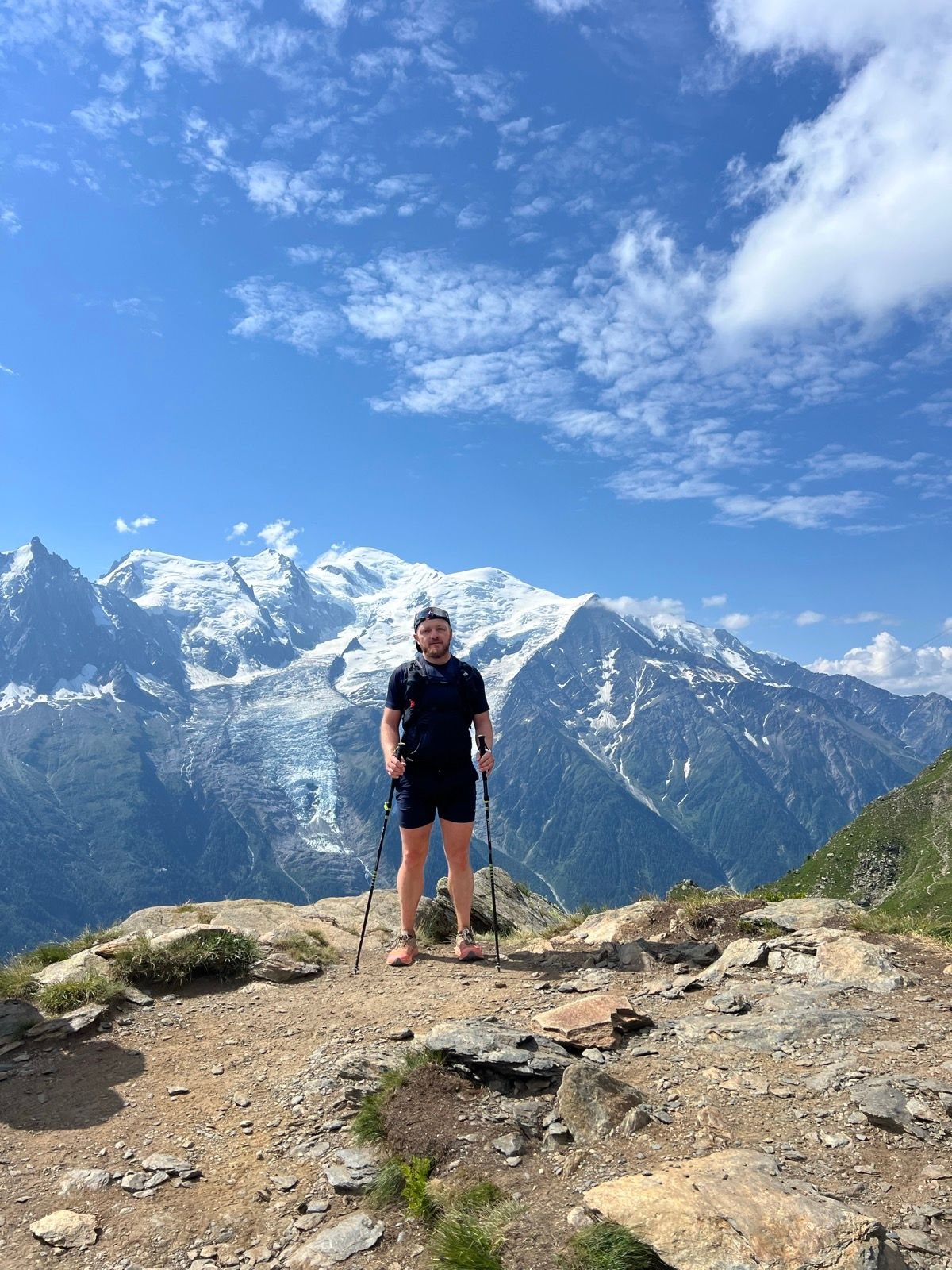 My wife is an ultra runner. When we met I ran more than her - both longer distances and more consistently. I remember when she ran her first half marathon and how accomplished she felt. I’ve run a handful of 50k races - the shortest distance possible that is still considered an ultra-marathon. During every race when I pass mile 26, I just wish I was done. Regardless, not only did she begin enjoying 100 mile races, she really got involved in the community - she co-leads a weekly run group, and follows all the big races. One race she’s always been intrigued by is call UTMB - The Ultra Tour Mont Blanc. I’m in no shape to race that much distance or elevation, so I was really excited she decided to slow down this one and do the tour over six days with me. She also invited a friend. We “fast-packed” the trip, meaning we traveled with all our necessities; gear and hygiene equipment mostly, packing our 15 liter running packs to the brim. The trip went through 3 countries - Starting in France, through Italy, and Switzerland, and back into France where we started. We started the first day in a small town called Les Houches. We put up 23.5 miles and over 9k’ of climbing to end at our first mountain camp - Refuge de la Croix du Bonhomme.